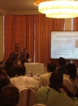 接下來參訪的是捷盟行銷股份有限公司,為統一集團關係企業,公司業務為配送全省 7-11 門市、康是美、多拿滋、星巴克等之常溫性商品,是一具備先進物流技術及設備的物流廠商,在台灣物流業界,不論規模或是經營績效,堪稱為物流業楷模,由黃經理帶領大家體驗商品從進貨驗收入庫、庫內理貨到配送門市的全程作業。